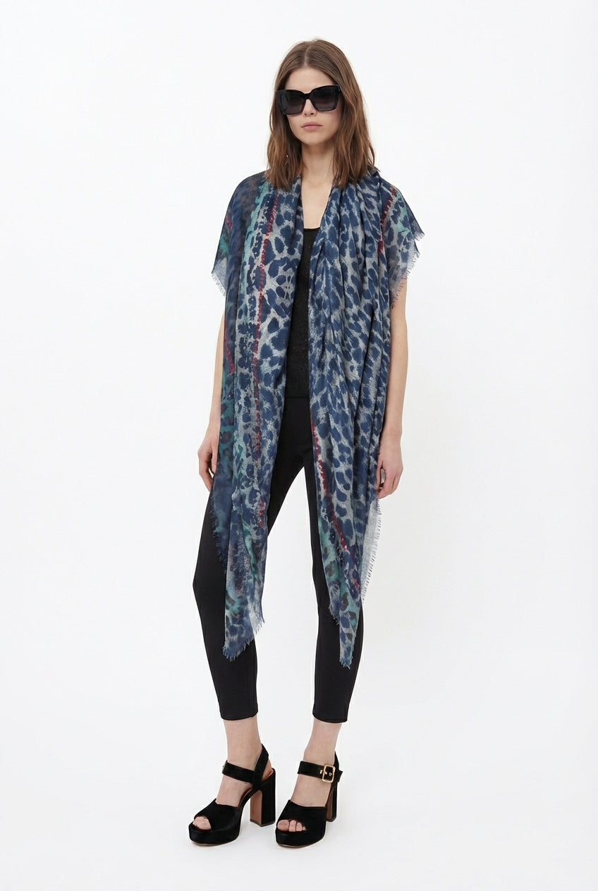 VASSILISA Scarf in Blue: Leopard Print, XL