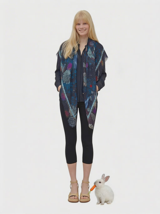 VASSILISA Scarf in blue: Bambi & Floral, XL
