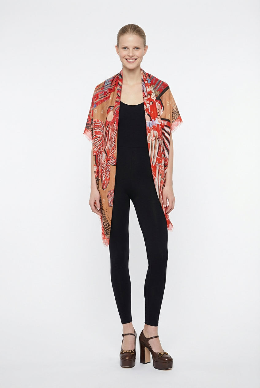 VASSILISA Scarf in Red and Beige colours: Lucky Fish Print