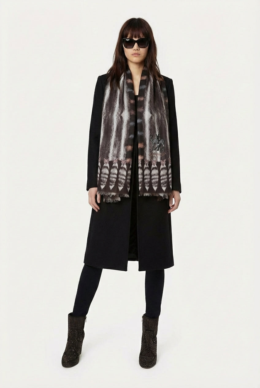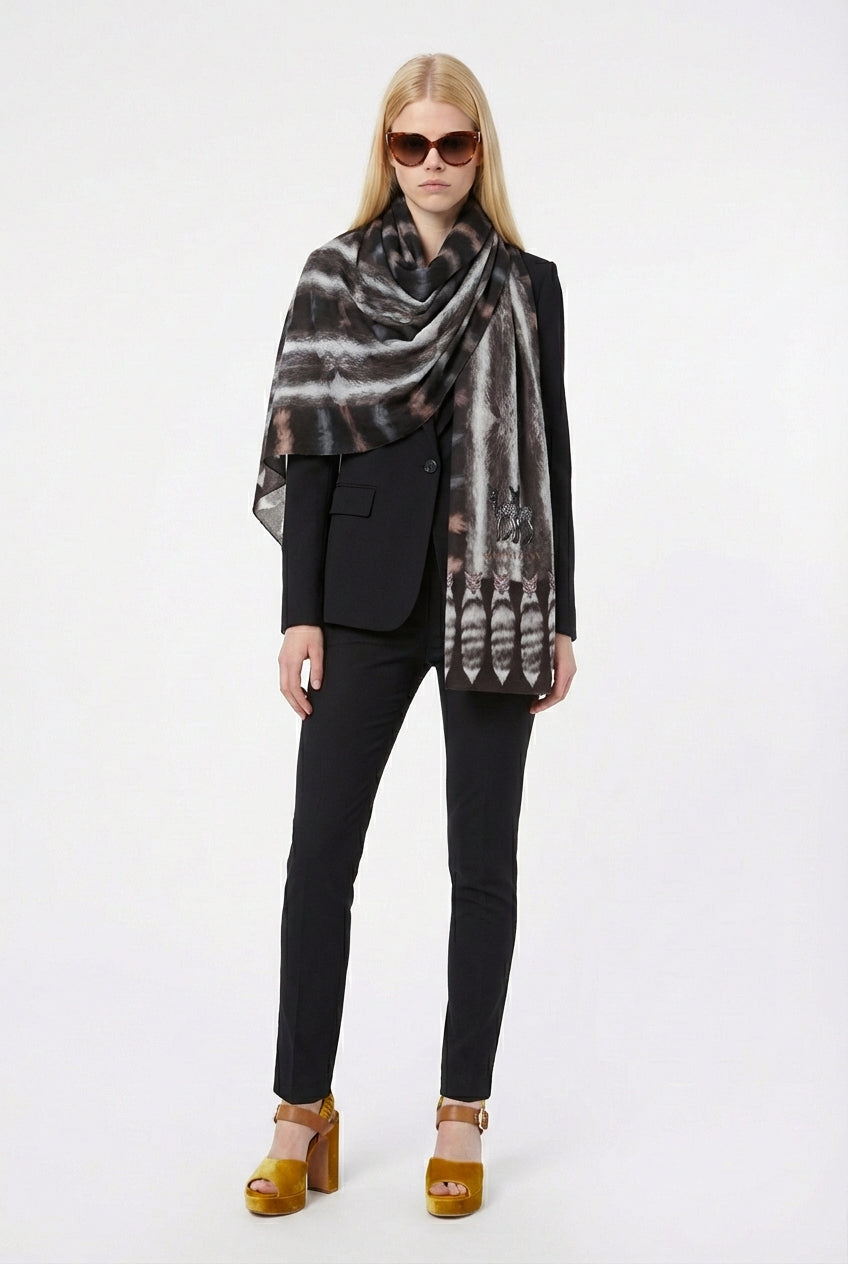 This signature VASSILISA extra-large Tails Print scarf is a must-have for a scarf-lover, with all it's unique luxurious character. A special item from day to night, it looks as good in a city business meeting, as in is in the countryside walk. Sophisticated luxury look and feel, finely crafted in Italy.