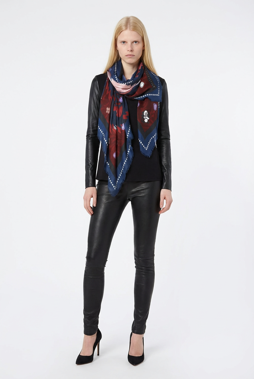 VASSILISA Scarf in Burgundy Colour: Panda and Emoji Print